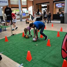 Válení míče po koberci si zkusili ti menší borci a šlo jim to celkem dobře