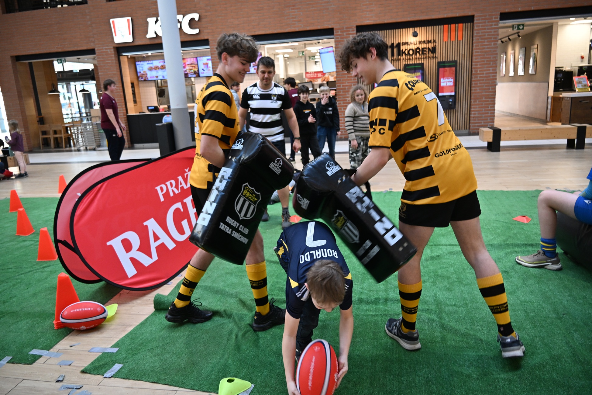 První březnový pátek proběhla v obchodním centru Novo Plaza akce ZAŽIJ RAGBY, jejíž hlavním pořadatelem byla Tatra Smíchov, která společně s dalšími pražské kluby připravila pro návštěvníky centra ukázky ragby se vším, co při ragby mohou zažít. Zájemci v drtivé většině mládež si tak mohli zkusit mimo jiné i přihrát ragbyový míč kamarádovi, rodičům, ale i dokonce nejlepším hráčům loňského roku Adamovi Koblicovi a Julii Doležilové, kteří byli po dobu 240 minut, kdy se akce konala, přítomní na místě. Zájemcům o seznámení s taji ragby se věnovali především mladí hráči a hráčky třeba z nejstaršího českého klubu Slavie Praha založeného v roce 1927 a jen o rok mladšího klubu Sparty Praha (1928),dále Pragy Praha, Petrovic, Tatry Smíchov a Olympu Praha.