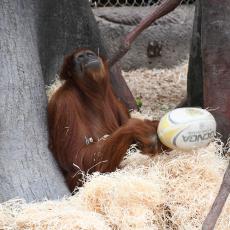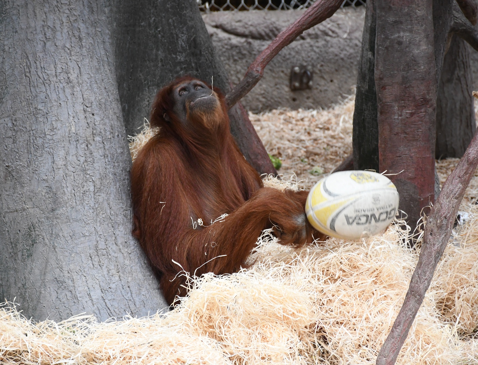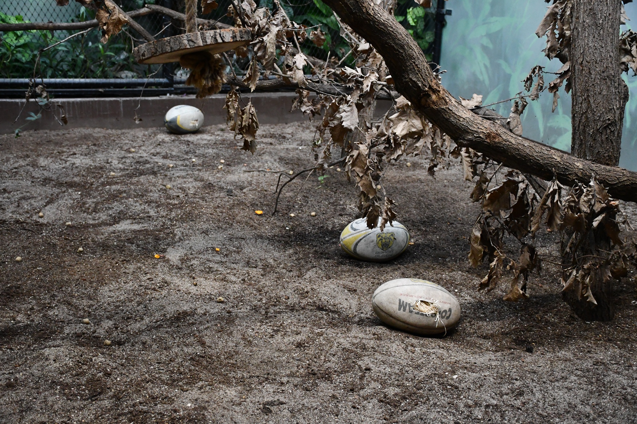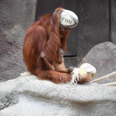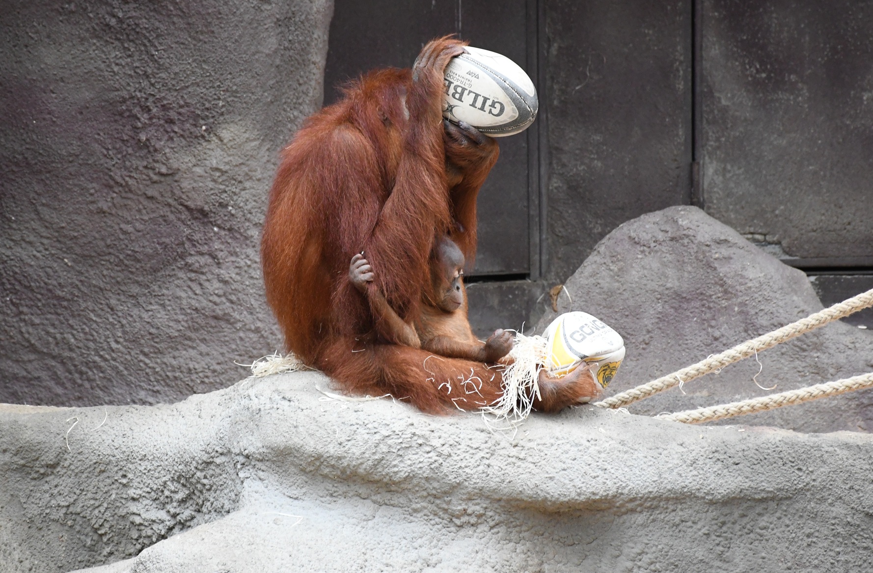 Zvířata dostala ragbyové míče na hraní vůbec poprvé v jejich životě a proč zrovna to byly ragbyového míče, jsme se dozvěděli od ragbistů Pragy Praha, které před časem napadlo vyřazené míče věnovat právě do Zoo Praha.