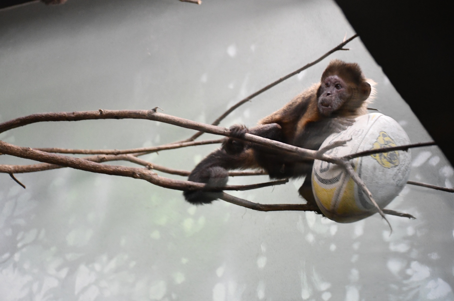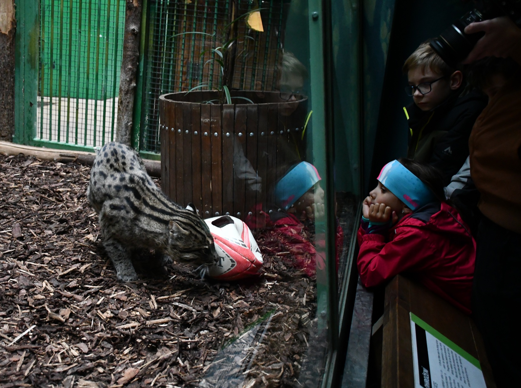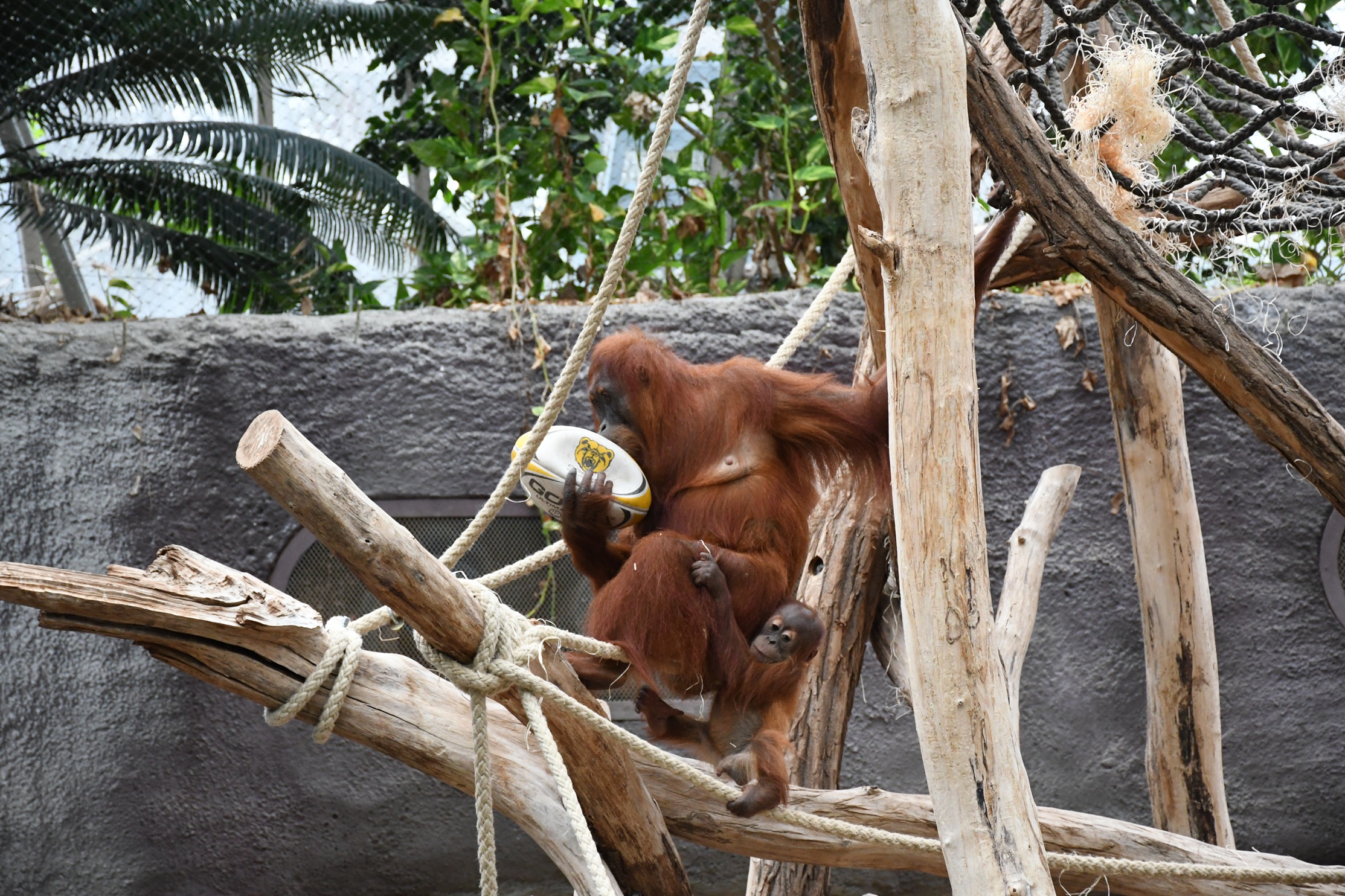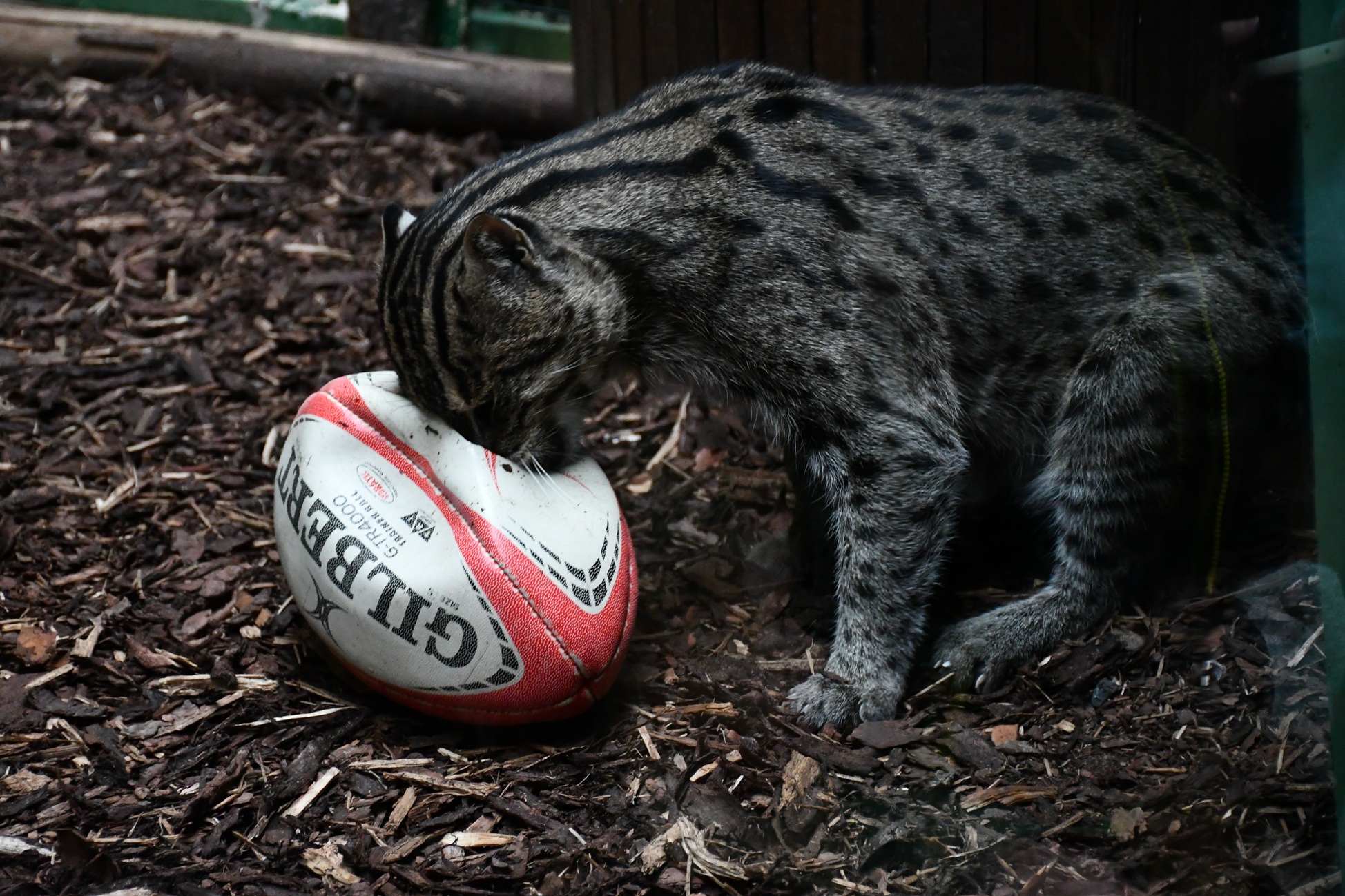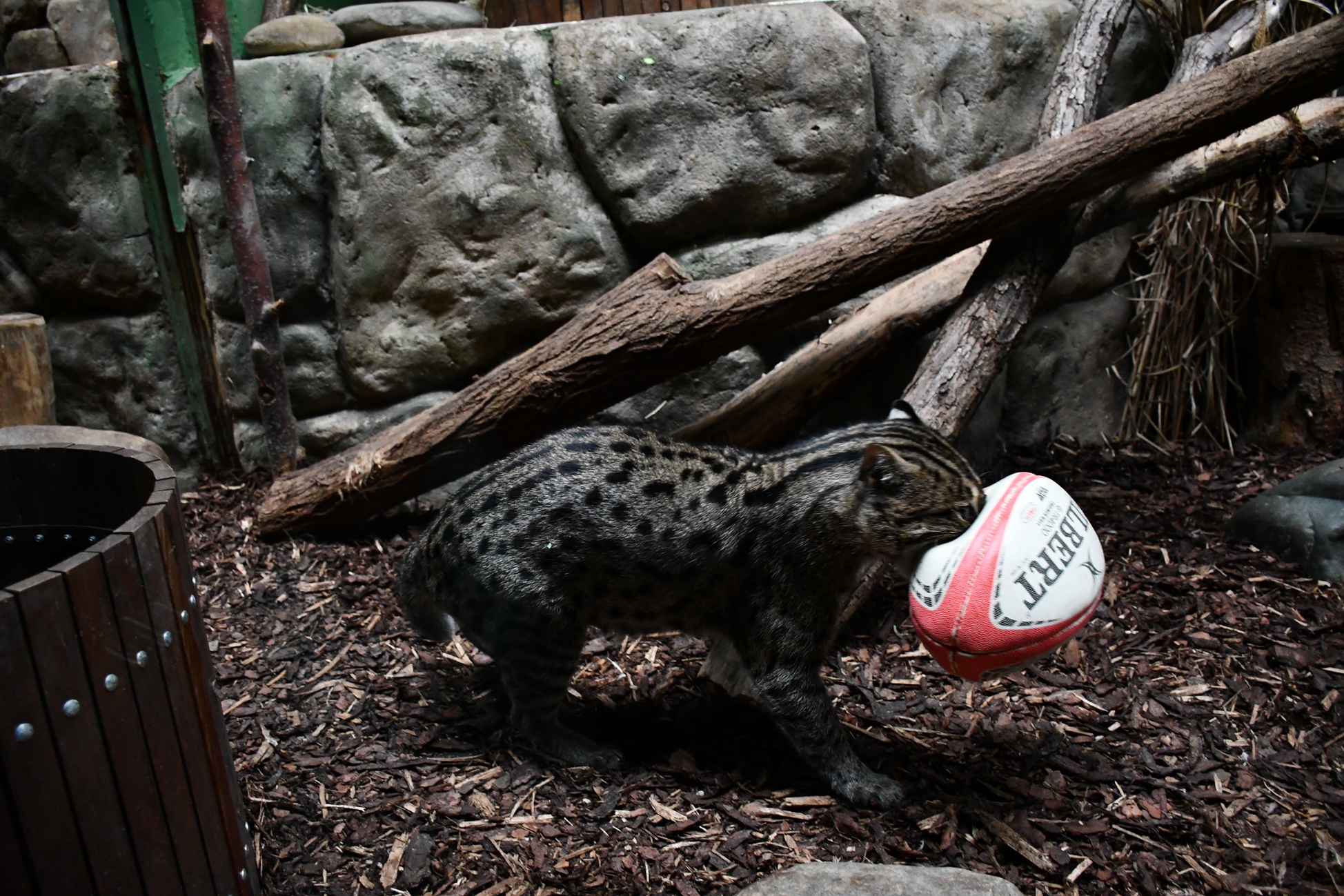 Jedním ze zvířat, které si vyzkoušelo nový prvek v Pavilonu šelem a plazů v podobě ragbyového míče, byla kočka rybářská, na kterou se volá Baniu. Dalším zvířetem, které se zase na jiném místě seznámilo s ragbyovým míčem byla malpa zlatobřichá. Šišatý míč jsme sledovali také na místě, kde se předváděli v bazénu lachtani a v pavilonu nazvaném Indonéská džungle se zase ze šišatých míčů radovili huňatí orangutáni sumaterští. Nutno dodat, že speciální obohacení tzv. enrichment byl plněný různými dobrotami, ovoněný pachy a pro vybrané druhy upravený tak, aby představoval zpestření krmné dávky i herní prvek.