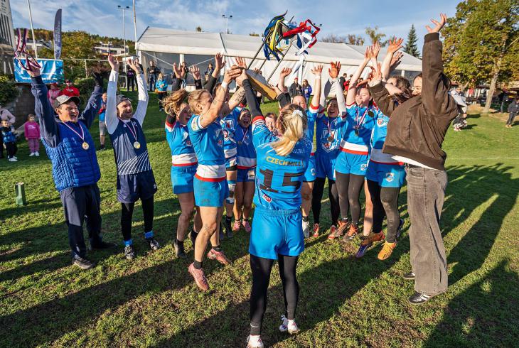 Mistryně republiky žen v sedmičkové ragby 2025 tak skončil společný tým RC Mountfield Říčany/RK Petrovice (PeŘí).