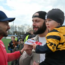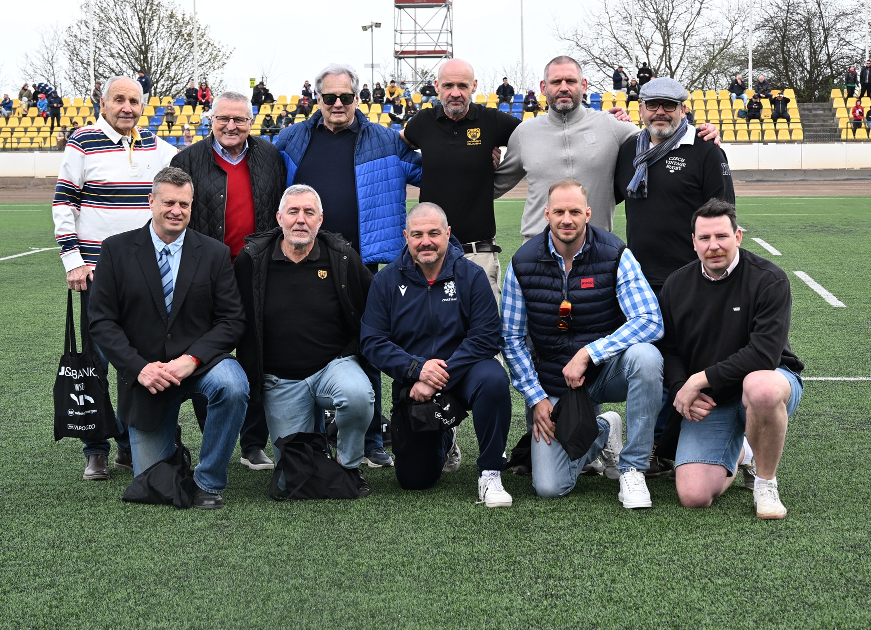 Bylo milé, že Česká rugbyová unie využila patnáctiminutové přestávky, aby představila a pozvala na hrací plochu deset kapitánů československé a české reprezentace z let od 1968 až po rok 2015, dále mnohonásobné a dostupné Ragbisty roku, ktere jsme tak mohli společně vyfotografovat. To všechno v rámci století tuzemského ragby.