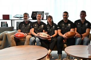 Hvězdy týmu seniorů nejúspěšnějšího ragbyového klubu v zemi Pragy Praha se svými trofejemi